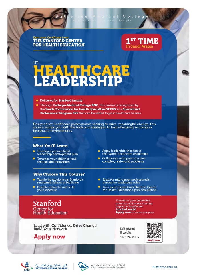 Thank you for your interest in the Stanford Healthcare leadership course certified by SCFHS. We’re excited to share that all seats for the upcoming cohort are now fully booked.